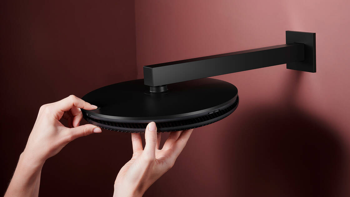 The spray disc on a Raindance Alive shower features a mesh-effect cover for more textile-like, human-centric design. It is easy to remove as required.